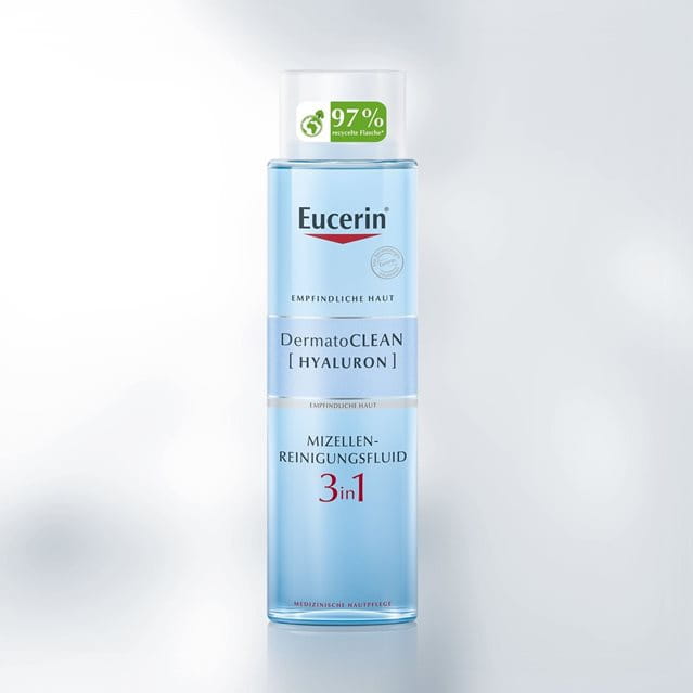 Eucerin DermatoCLEAN [HYALURON] Mizellen-Reinigungsfluid 3 in 1 ist eine schnelle und angenehme Reinigungslösung, die drei Vorteile in einem Produkt bietet: