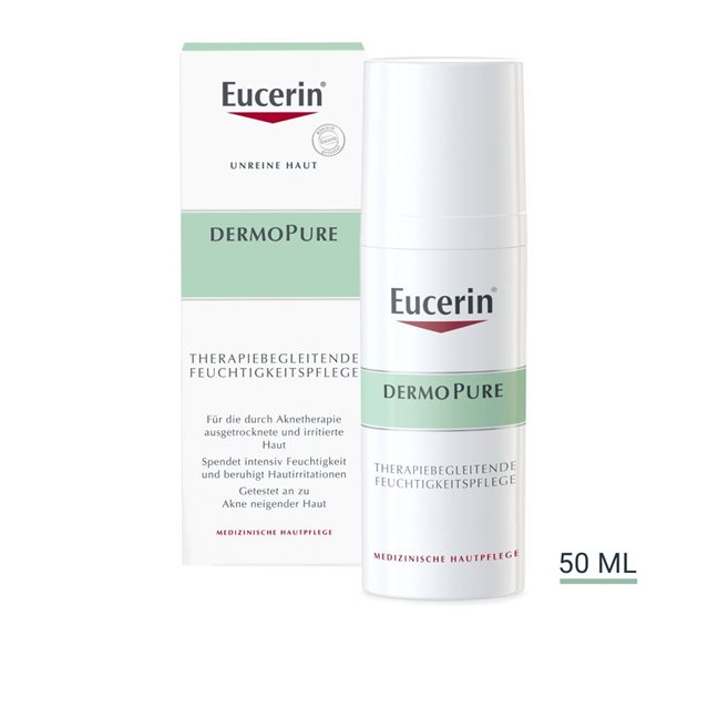 Die Therapiebegleitende Feuchtigkeitspflege kann auch ohne medikamentöse Aknetherapie dauerhaft verwendet werden, vor allem, wenn Sie unter trockener, unreiner Haut leiden. Für den Fall, dass Ihnen die Pflege zu reichhaltig ist, empfehlen wir das Eucerin DERMOPURE Mattierende Fluid.