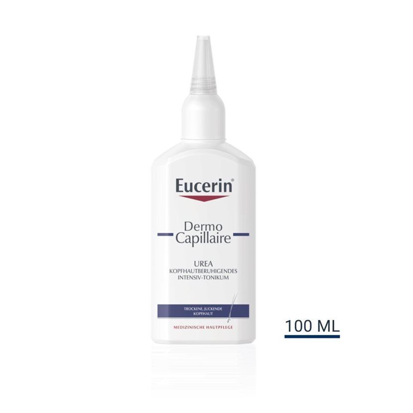 Intensiv-Tonikum gegen juckende, trockene und schuppige Kopfhaut Eucerin DermoCapillaire Urea Kopfhautberuhigendes Intensiv-Tonikum wurde speziell für Menschen mit trockener und juckender Kopfhaut entwickelt. Die milde, duftstofffreie Formel ohne Ausspülen klebt nicht und spendet der Kopfhaut lang anhaltende intensive Feuchtigkeit, um Irritationen zu beruhigen und Juckreiz zu mindern – von der ersten Anwendung an. Es mindert Mikro-Entzündungen, die die Entstehung von Schuppen und Juckreiz verursachen und verbessert dadurch den Zustand der Kopfhaut spürbar. Die Kopfhaut kommt zurück in ihre natürliche Balance.