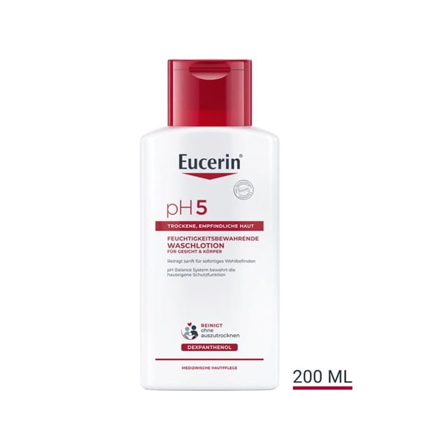 Die Reinigungs- und Pflegeserie Eucerin pH5 enthält sehr milde, dermatologisch geprüfte Inhaltsstoffe, die für empfindliche und trockene Haut ideal sind. Diese Produkte sind alle äußerst hautverträglich und schützen die Haut vor den alltäglichen Umweltbelastungen. Die pH5-Citratpuffer in den Eucerin pH5 Produkten stabilisieren den Hydrolipidfilm der Haut auf natürlichem Wege. Glycerin und Dexpanthenol schützen die Haut vor dem Austrocknen und fördern die Regeneration der Haut.